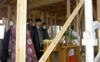 曇り空で冷え込んだ日でしたが、多くの皆様にお集まりいただき 上棟式(お餅投げ)を行うことができました。