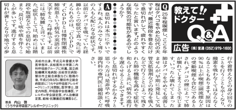 9月20日付けの“静岡新聞 「教えてドクターQ&A」の記事をご覧いただいた方もいらっしゃるかと存じます。