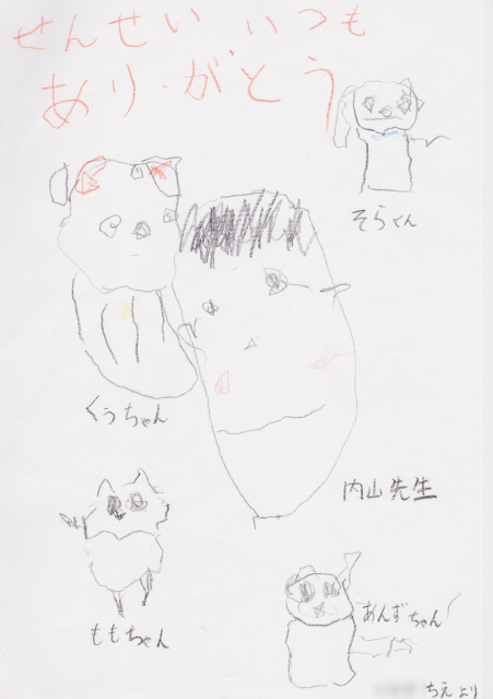 3歳の「ちえちゃん」から「せんせい、どうぞ」とこんな絵が贈られました。