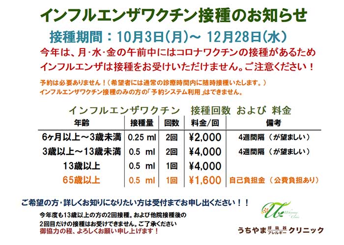 今年もインフルエンザワクチン接種の季節がやってきました。