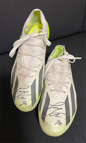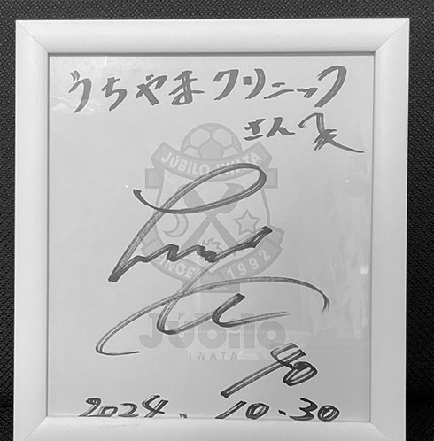 以前にこのHPでも紹介した ジュビロ磐田の山田大記選手・金子翔太選手 ジェフユナイテッド市原・千葉の小川大貴選手が立ち上げたNPO法人 Re:Frameが協力している「LOCAL ACTION HAMAMATSU」さんの“こども食堂併設型の私設図書館創設” のためのクラウドファンディングに参加し、金子翔太選手の2023年シーズンに着用していたスパイクシューズをGETしたところ、何と忙しい緊迫した練習のあとに御本人が直接クリニックまで届けてくださいました!感謝しかありません!!