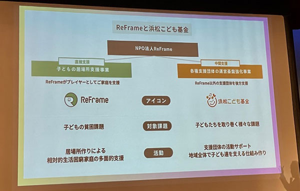 お声掛けいただいた代表の山田大記さん(ジュビロ磐田CRO)やMCを務めて下さった久保ひとみさん、トークセッションのゲストとして全国こども食堂支援センター むすびえ 代表の齋藤さん、浜松子育て情報サイトぴっぴ 代表の原田さんをお招きして 浜松こども基金の設立の経過や課題、子育て支援とこども食堂などの活動における問題点などを詳しくお話しいただき、大変に為になる会合でした。