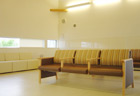 待ち時間を少しでも快適に、くつろいで過ごしていただけるように 窓からは周囲の緑を臨み、高い天井と白と木目を基調に落ち着いた色調で まとめて、磐田そして大久保の地に溢れる「光」と「風」を感じられるスペースを 待合室として設けました。