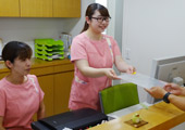 ミネラルウォーターやキッズコーナーも設置し、高齢の方から子供連れの方まで どなたでも来院しやすい空間となるよう心掛けました。スタッフも笑顔で対応させていただきます