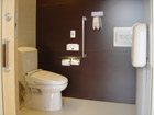 待合室からも診察室からも近く、バリアフリー設計です。 照明も換気もセンサーで自動にオン・オフされるため、車イスでも使用 しやすくなっております。検尿の際には、内側から直接提出できるように なっており、わざわざ検体を持ち出す必要がありません。