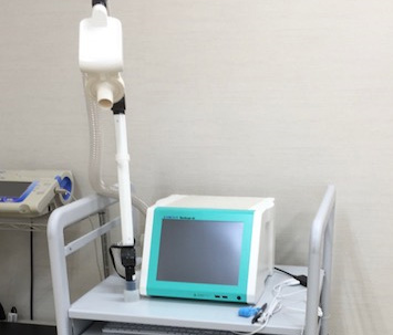 心電図や肺機能検査に加え、呼吸抵抗を測定する“モストグラフ”や